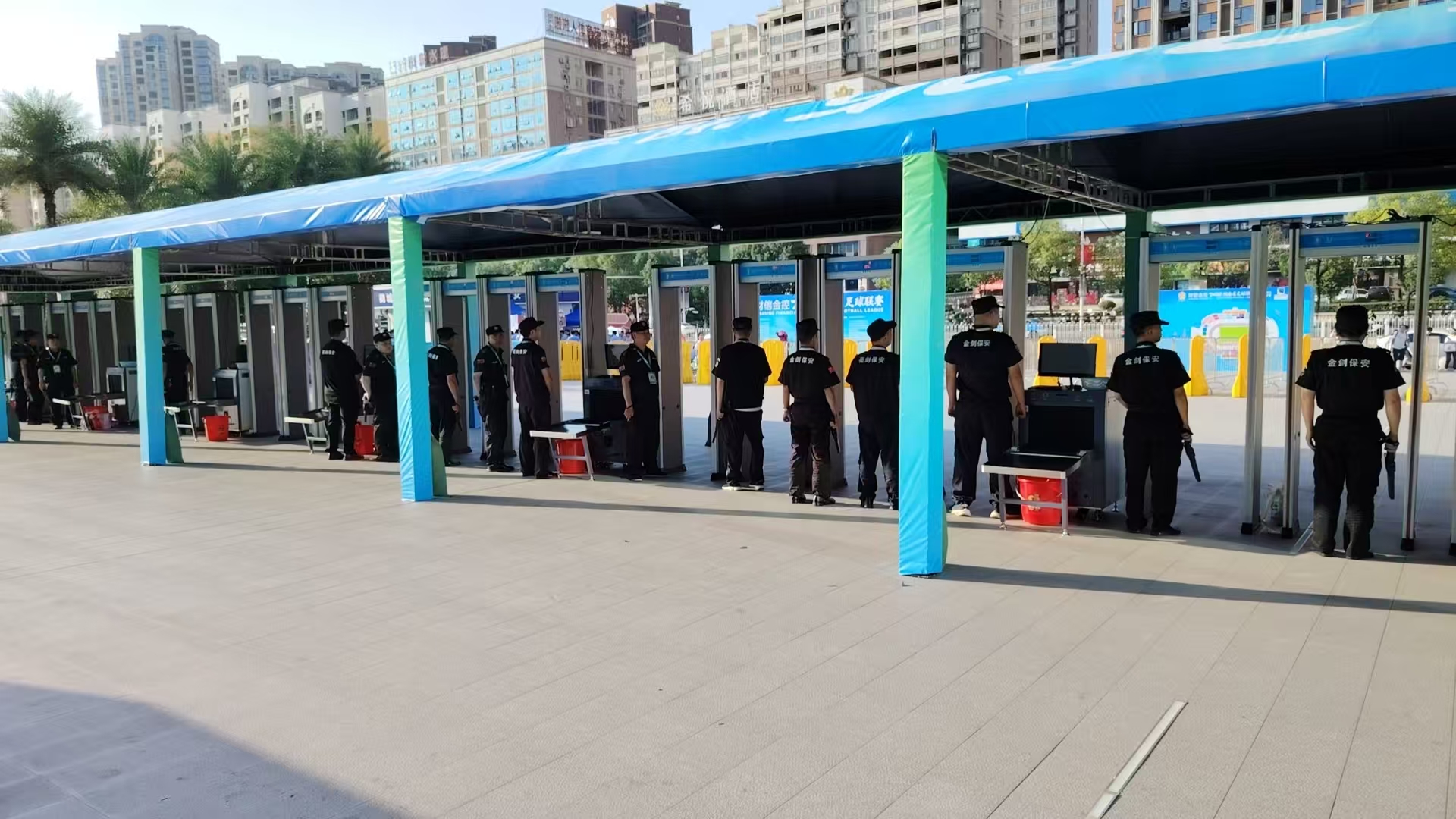 懷化金劍保安公司、懷化亮劍保安服務(wù)有限公司在這次賽事中,具體負(fù)責(zé)體育中心外圍進(jìn)場的安檢工作。此次主場比賽有1.5萬多名觀眾進(jìn)場,安檢任務(wù)壓力極大。為做好進(jìn)場安檢工作,金劍保安服務(wù)有限公司董事長向其華率先垂范,在比賽前幾天一直撲在安?,F(xiàn)場,參與對安檢儀器擺放和測試,確保安檢門檢測儀靈敏有效。同時組織隊員數(shù)十次進(jìn)行模擬演練,熟練掌握、操控安檢儀器。
